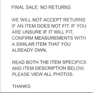 At the moment, there are no returns. I'm a new reseller, but please check at the photographs before you buy the item since I will not be able to take back return clothes once the transaction is finalized!