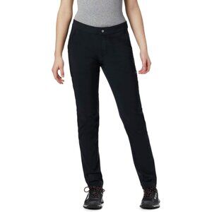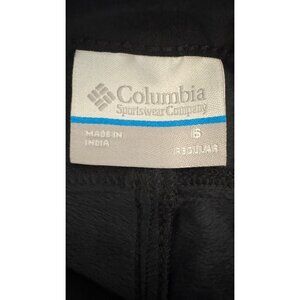 women's pants, black pants, Columbia pants, straight-leg pants, stretch fabric, outdoor wear, casual wear, functional pockets, versatile pants, polyester blend, sun protection, casual pants, stretchy, golf pants, size 6, comfy, stain repellent