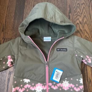 NWT Columbia Steens Mt Overlay Winter Hoodie. Size 4T. Stone Green Daisy Dot Pink print.