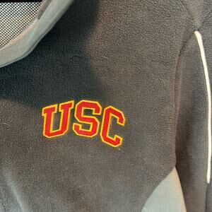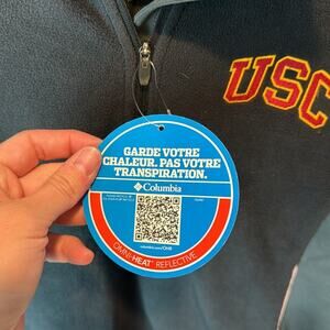 New With Tags Columbia Crosslight University of Southern California Half Zip Fleece Jacket. This is a women's medium. Mostly black with gray sides. USC logo on the chest. Interior is their reflective Omni-Heat Material, great for colder weather and Trojan fans! 93% polyester, 7% spandex.