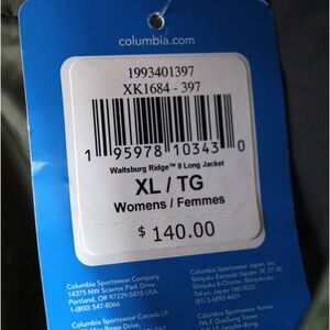 NWT Columbia Waitsburg Ridge ll Long Zip Up Jacket size XL