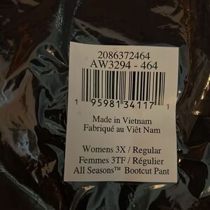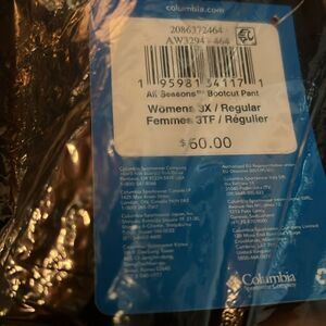 New with tags and in package, Columbia Women's All Seasons Bootcut Pants size 3X, women’s size 24, color is navy. I have two pair of these new in the package, and two pair that were worn once. They were too long on me. My loss is your gain! Bundle and save!