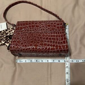 NWT Comely brown faux alligator handbag polka dot scarf that matches the lining