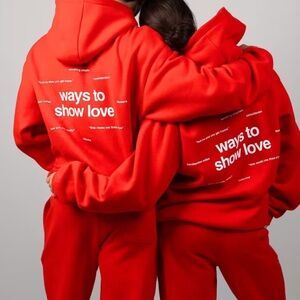 Viral crimson red love hoodie and sweatpants SET. Comfortable and stylish.