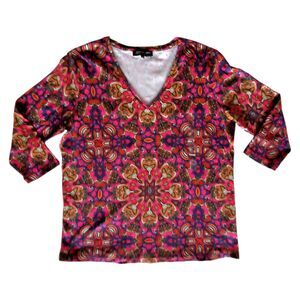 Kaleidoscope Print Jones New York Kaleidoscope Print 3/4 Sleeve 100% Cotton Top - Size 1X