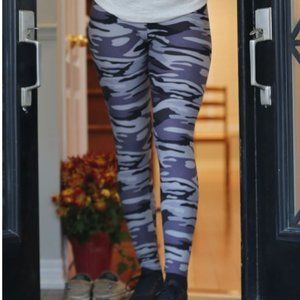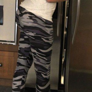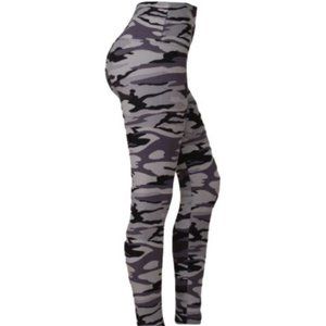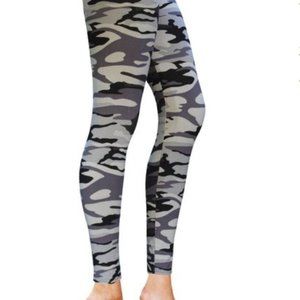 New with Tags. Grey Camouflage Printed Brushed Tummy Control 5″ High Waist Full Length leggings.