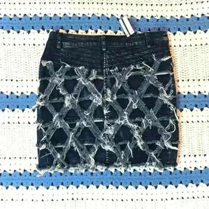 NWT Comme USA Denim Rhinestone Destroyed Deconstructed Diamond Triangle Pattern Cotton Blue Jean Skirt