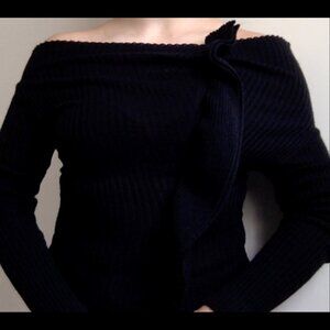 Brand new with tags. Vintage Comme des Garcons x Junya Watanabe 100% wool off shoulder asymmetric ruffle ribbed knit sweater. Can be worn off the shoulder or wide cowl neck. Small holes fixed. Iconic silhouette. Romantic and edgy. Very soft and stretchy, lightweight. From early 2000's Y2K collection. Ruffle embellishment down one side. Size S. Box S5.
