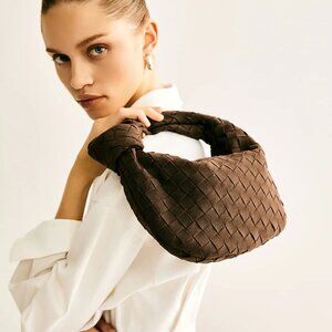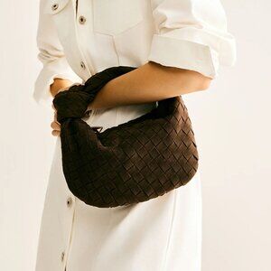 NWT! Commense brown woven bag similar to Jodie knotted intrecciato leather tote. Faux suede material.
