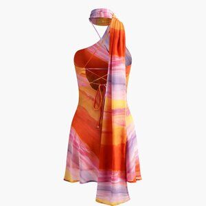 NWT Commense Sunny Semi-Sheer Halter Tie-Dye Scarf Mini Dress