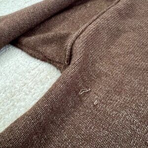 Brown knit sweater pants set. Features a turtleneck sweater with side slits and pull on sweater pants with wide leg design. Fabric has stretch. Limited bundling due to weight / bulk