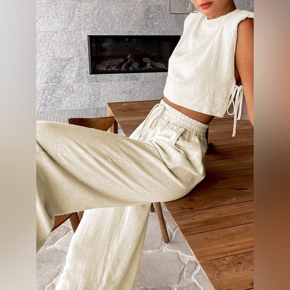 New w/ Tags - Commense Utility Linen Crop Top in Khaki - Size XS