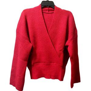 NWT Commense Women's Red Ribbed Wrap Sweater Size XL