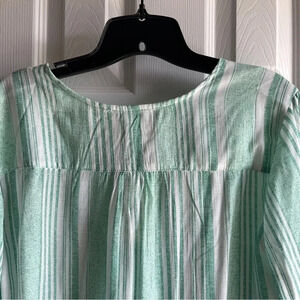 NWT Como Blu Green and White Striped Quarter Button Blouse, Size L Easy Breezy!