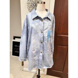 New with tags lovely light blue tie dye look called blue lizard on the tag button down shacket jacket.