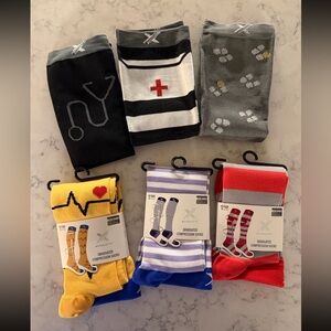 Nurse print compression socks. Brand new with tags, never used, would make a great gift for a nurse!