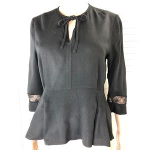 NWT Comptoir des Cotonniers Women's M Black Viscose Lace Blouse Made in France