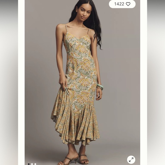 NWT Conditions Apply Ellianna ruffled slip maxi dress banana yellow Anthropologie XS resort wear