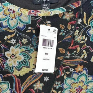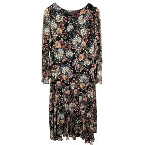 NWT Connected Apparel Chiffon Long Sleeve Floral Midi Shift Dress Size 20W