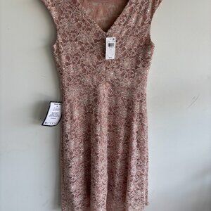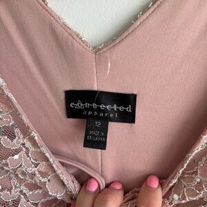 NWT Connected Apparel Womens Sequin V-Neck Sleeveless Dress Dusty Nude Size 12