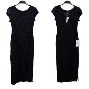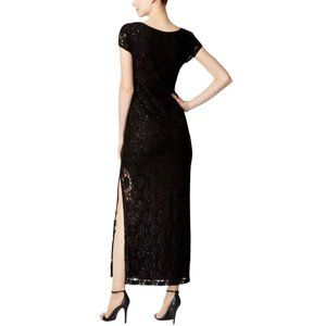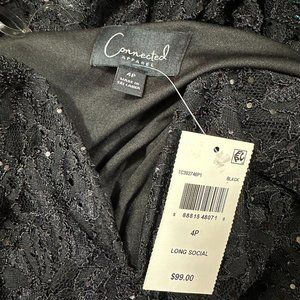 NWT Connected Apparel Womens Size 4P Black Lace Sequin Formal Evening Dress Gown