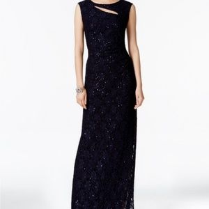NWT Connected Cutout Sequined Lace Gown Dark Navy blue