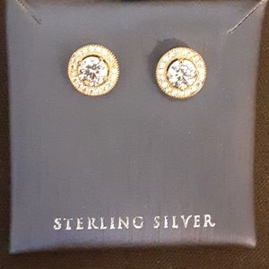 Cubic Zirconia Sterling silver & Gold tone earrings elegant round studded. Never been worn. Earrings comes from smoke and pet free environment.
