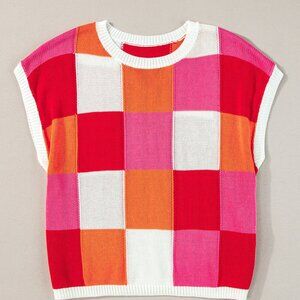 Upgrade your wardrobe with the perfect blend of cozy and chic! Our Contrast Plaid Round Neck Cap Sleeve Sweater is here to add a playful twist to your everyday look. Crafted from a soft, breathable fabric, this sweater brings you the ideal combination of comfort and style, whether you're lounging on the weekend or out with friends.