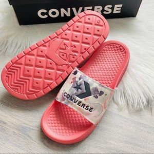 The classic, athletic slide sandal gets the Converse treatment with a bold, contrast Star Chevron. A recycled mesh lining helps to keep you comfortable, while a fresh, floral-printed strap inspires you to get outdoors.