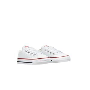 Step into timeless style with the Converse Chuck Taylor All Star Classic Optical White sneakers in toddler size 9T(style code 7J256). These iconic sneakers feature the classic canvas upper, rubber sole, and the signature Chuck Taylor patch for a durable and comfortable fit. The optical white color adds a fresh, clean look, perfect for any casual outfit. Ideal for toddlers who love comfort and style, these shoes offer a versatile design that complements any wardrobe.