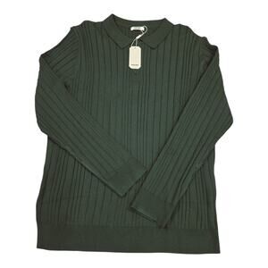 Elevate your style with this brand new Coofandy men's long sleeve polo sweater in a sophisticated pine green. This sweater is perfect for adding a touch of class to any outfit.