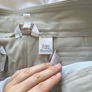 The NWT Coral Bay Golf Women's Capri Pants in Khaki are a stylish and versatile addition to any wardrobe. These slim-fit pants feature an elastic waist and a pull-on closure for convenience. Made from a blend of nylon, spandex, and rayon, these pants offer both style and stretch, perfect for outdoor activities or casual wear. The cropped leg and beige color make them a trendy choice for all seasons. Machine washable for easy care, these pants are a must-have for women looking for a comfortable and flattering option.