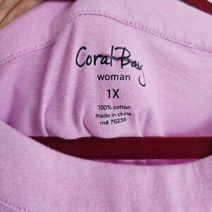 NWT Coral Bay Women's Plus Size 1X Soft Pink Cotton Comfort Loungewear Tank Top