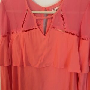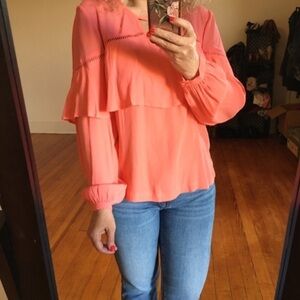 NWT Coral Ruffle Top Southwestern LONG Sleeves