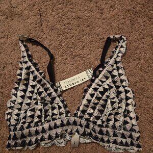 Cosabella Never Say Never Printed Tall Triangle Bralette in jazzy jeff. Italian artisanship crafted, 93% polyamide 7% elastane.