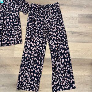 NWT Cosabella Stitch Fix PJ Pajama Lounge Set Black Pink Leopard Cheetah Large