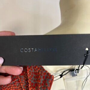 NWT Costarellos flocked silk velvet maxi dress in russet orange. Size EU 44