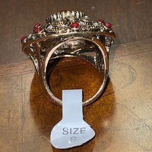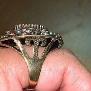 Costume jewelry Victorian game of thrones intricate design dark red stone ring. Exudes history and the magic of the East and Victorian era. Sturdy hardware. This ring is not sterling silver. Stones are not precious or semi-precious. Condition: new with tag. Brass tone hardware. Box not included