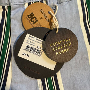 NWT Cotto On Blue/Green/Navy Striped Chino Shorts Mens 30