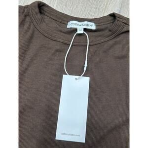 NWT Cotton Citizen Womens Verona Ribbed Crop Top Long Sleeve Knit Brown Size M