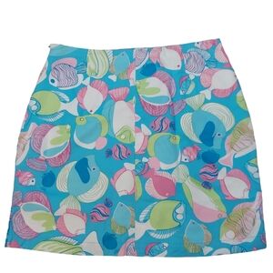 NWT Cotton Connection Women's Cotton Fish Blue Pink Skirt Side Zip Butto…