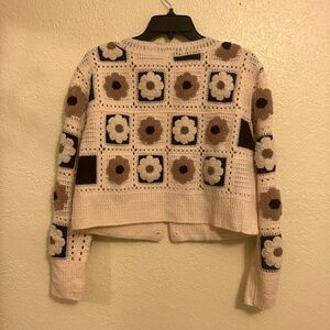 NWT - Cotton Emporium Women’s Ivory Cardigan. This button-front cardigan features vibrant flowers that add a sunny-day charm. It is crafted from soft yarns in a sweetly cropped silhouette, making it perfect for any occasion. Size Small, with a crewneck and long sleeves. Made of 70% acrylic and 30% cotton. Care instructions: hand wash and dry flat. Imported.