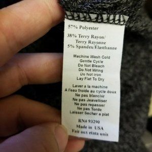 57% polyester 38% terry rayon 5% spandex