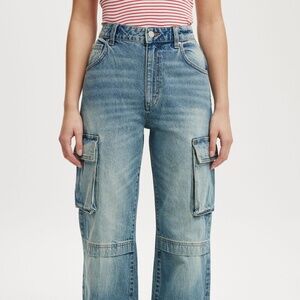 NWT Cotton On - Curvy Cargo Wide Jean - Smokey Black Color - NO WAIST GAP