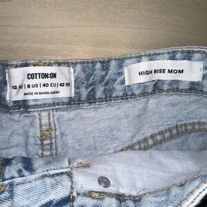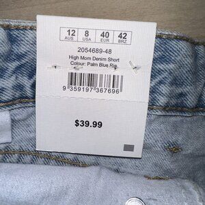 NWT Cotton On High Rise Palm Blue Rip Distressed Denim Mom Denim Short Women's 8