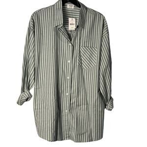 NWT Cotton On Oversized Green Striped Button Down Dad Shirt XS Professional