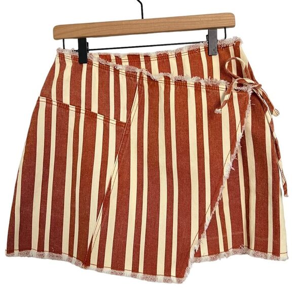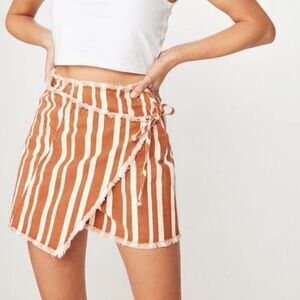 NWT Cotton On Striped Denim Wrap Mini Skirt 8