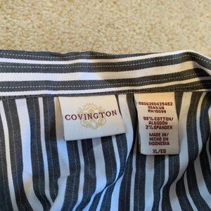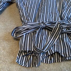NWT Covington Muted Black and White Striped 3/4 Sleeve Wrap Blouse Size XL