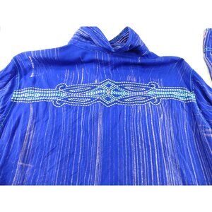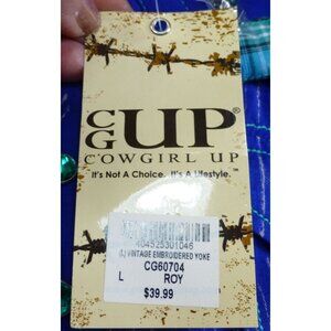 NWT Cowgirl Up Embroidered Yoke Western Jewel Embellished Shirt Blue Pinstripe L