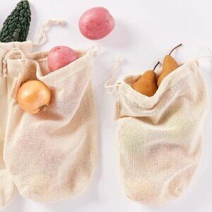 This entire set is NWT; never used. It was purchased directly from Coyuchi.com. Please note that this product is listed on Coyuchi's website with another bag included in the set. However, in the set being sold here, there are 3 bags total: the 2 mesh bags and the 1 narrow, storage bag.
